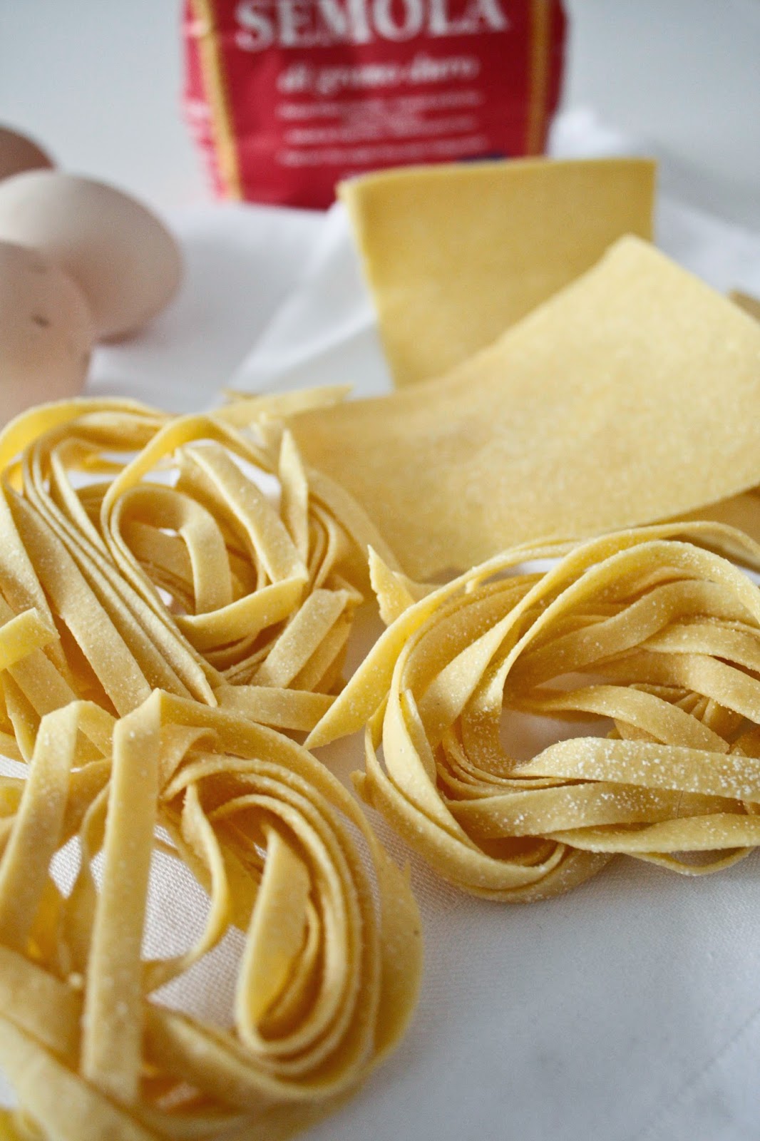 Nedávno jsem si pořídila strojek na vyvalování těsta s nástavcem pro výrobu spaghett a fettuccine. Hned jsem mu propadla a je teď ze mě vášnivý výrobce nudlí a těstovinových výrobků všeho druhu. V porovnání se zdlouhavým a náročným vyvalováním pomocí válečku je výroba těstovin se strojkem úplná hračka.